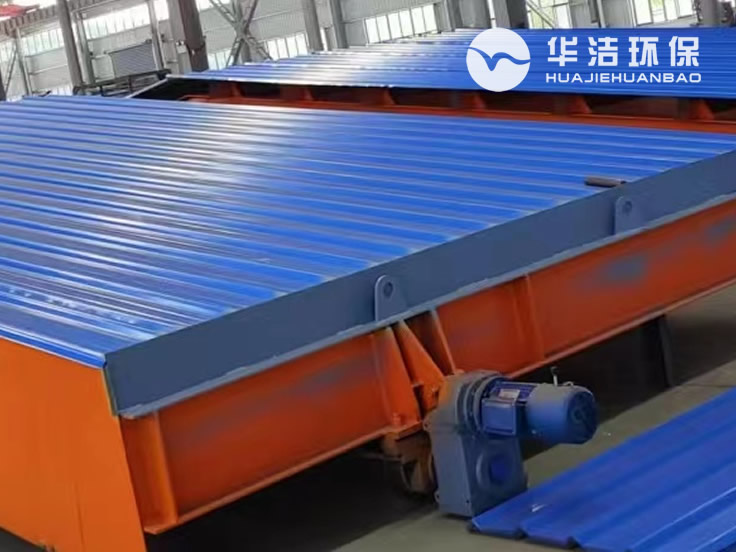 具有工程造價低、施工周期短、防震性能好等特點,廣泛應用在工業廠房、倉庫、機場候機樓等領域,目前鋼結構屋頂通常是雙坡面屋頂,現有的技術如公開號為cn204781532u的專利申請文件中公開的一種可移動式鋼結構屋頂,包括行走梁、電動運行機構、桁架梁、彩鋼瓦板、緩沖器、夾軌器、軌道,所述桁架梁和彩鋼瓦板連接,并固定在行走梁上,在軌道上運行,所述緩沖器、夾軌器安裝在行走梁上。